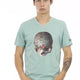 Unleash your inner trendsetter with the Trussardi Action short sleeve T-shirt. A bold statement piece, this V-neck tee features a striking front print that captures attention and exudes confidence. Crafted from a premium blend of cotton and viscose, it promises breathability and comfort without compromising on style. Ideal for the fashion-conscious man, this green shirt will elevate your casual look with a touch of Trussardi’s signature sophistication.