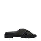 Green Fabric Flat Sandals