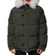 Green Hooded Long Sleeves Fur Shearling Jacket