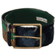 Green Jaquard Embroid Leather Gold Metal Belt