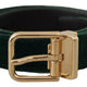 Green Velvet Leather Gold Metal Logo Belt
