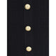 Balmain’s midi Skirt enhances the silhouette with a ribbed and twisted knit, giving structure and movement to the garment. On the front, the characteristic decorative "Coin" buttons in gold metal, the house’s iconic signature, stand out. The back closure is entrusted to an exposed double zipper in gold metal, with sliders engraved "Balmain Paris." Contrasting ribbed trim completes the design for a sophisticated and recognizable look.