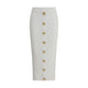 Balmain’s midi Skirt enhances the silhouette with a ribbed and twisted knit, giving structure and movement to the garment. On the front, the characteristic decorative "Coin" buttons in gold metal, the house’s iconic signature, stand out. The back closure is entrusted to an exposed double zipper in gold metal, with sliders engraved "Balmain Paris." Contrasting ribbed trim completes the design for a sophisticated and recognizable look.