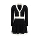 Balmain’s Knit Short Dress combines structured elegance and comfort. Made of stretch knit, it features a feminine silhouette with a flared skirt, collar and ribbed trim. The front closure is embellished with embossed buttons, the house’s iconic detail that adds a refined touch to the bold design.
