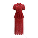 Self-Portrait’s lace midi Dress is a feminine and sophisticated design with short sleeves and a classic collar. The front closure is embellished with rhinestone bow buttons, while the peplum detail below the waist gives structure and movement to the silhouette. Complemented by an adjustable matching belt, it elegantly defines the waistline.