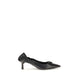 Prada’s logo Pumps are made of leather and feature a soft, tapered silhouette. The pointed toe model features a deconstructed design, enhanced by an elastic back that ensures comfort and fit. The architectural heel, inspired by the geometry of Prada’s iconic triangle, completes the look with a modern and distinctive touch, while the triangular logo on the front elegantly signs the model.