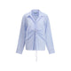 The Fil-à-fil Shirt by Prada features a classic shirt collar combined with a lace-up front closure for an original and contemporary touch. With long sleeves and moldable details on the collar and bottom, this garment combines functionality and versatility. Completing the design is the fabric triangle logo, a distinctive symbol of the brand. The regular fit ensures comfort without sacrificing an essential and refined style.