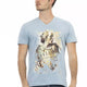 Unleash effortless style with the Trussardi Action short sleeve T-shirt. A chic light blue hue is the canvas for the bold front print, making it a statement piece in any modern wardrobe. Crafted with a blend of cotton and viscose, it promises comfort and breathability, making it perfect for those on the go. With a v-neckline that adds a touch of sophistication, this T-shirt is the epitome of Trussardi’s commitment to contemporary design and quality. Step out boldly in this trendy must-have.