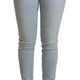 Light Blue Cotton Mid Waist Slim Fit Denim Jeans