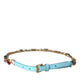 Light Blue Leather Crystal Chain Waist Belt