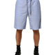 Light Blue Linen Mid Waist Men Bermuda Shorts