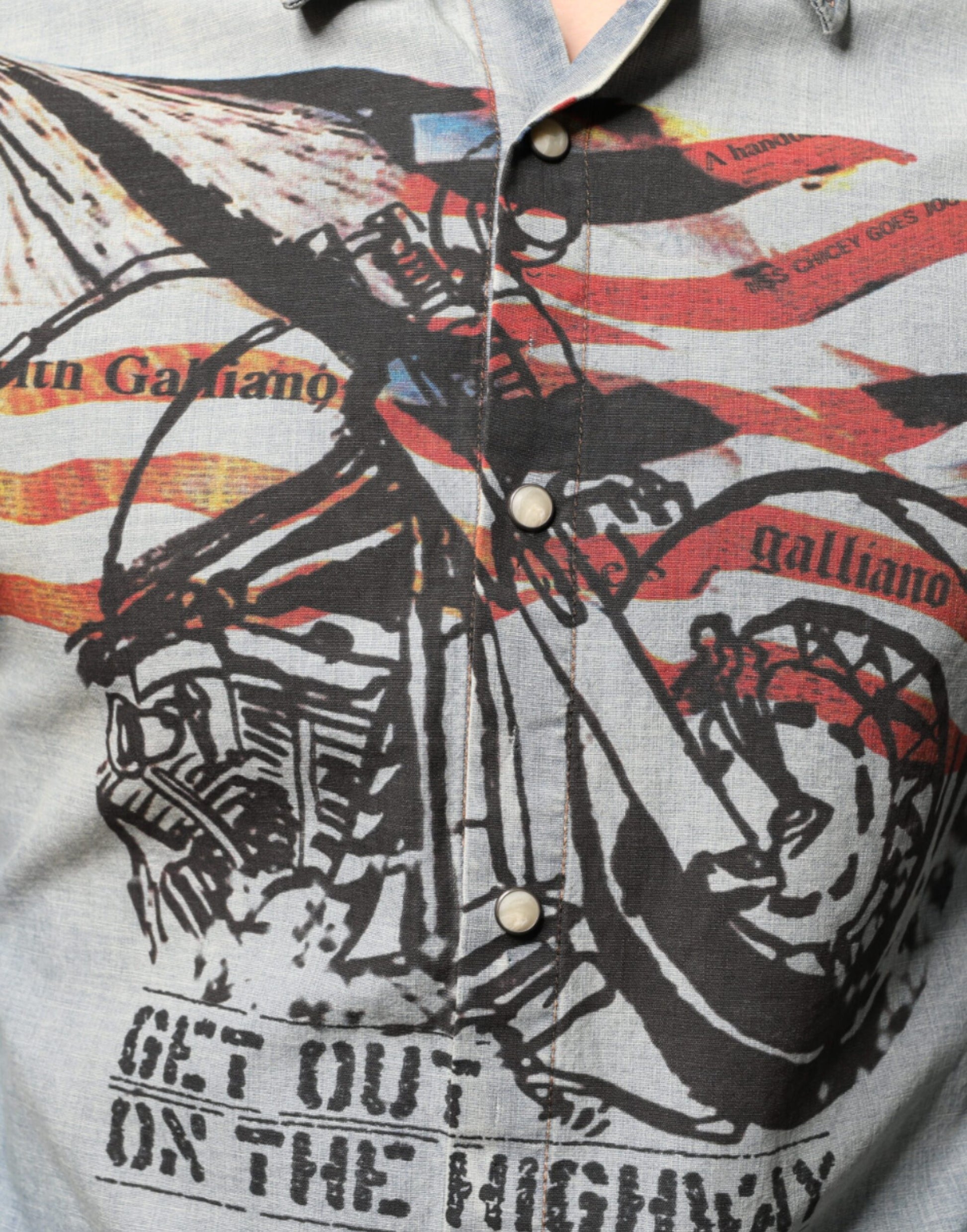 Absolutely stunning, 100% Authentic, brand new with tags GALLIANO denim casual shirt. The model has a classic neck, long sleeves and a button down closure.