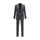 The London virgin wool Suit by Dsquared2 is a tailored proposal with an impeccable cut and refined style. The blazer jacket, made of pure wool, features a single button front closure, peak lapels, two flap welt pockets on the front and a slit pocket on the chest, for a classic but decisive look. The matching trousers, also in wool, feature a zip and button closure, two side slash pockets and two welt pockets on the back. An elegant and versatile suit, ideal for formal occasions or high-profile professional contexts.
