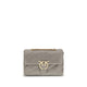 Calfskin Love Classic Shoulder Bag by Pinko, front closure with magnetic button, iconic gold-plated Love Birds logo embossed on the front, quilted and padded design, double internal compartment, sliding chain shoulder strap, iconic brand monogram embroidered tone-on-tone on the back.