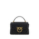 Calfskin Love Lady Mini Handbag by Pinko, front magnetic flap closure, iconic gold-plated Love Birds logo embossed on the front, quilted and padded design, double interior compartment, removable chain shoulder strap with smooth leather insert, flat rigid top handle, interior flat pocket with zipper, iconic tone-on-tone embroidered brand monogram on the back.
