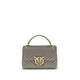 Calfskin Love Lady Mini Handbag by Pinko, front magnetic flap closure, iconic gold-plated Love Birds logo embossed on the front, quilted and padded design, double interior compartment, removable chain shoulder strap with smooth leather insert, flat rigid top handle, interior flat pocket with zipper, iconic tone-on-tone embroidered brand monogram on the back.