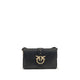 The Love One Bag by Pinko in smooth calf leather features a rectangular shape, flap and magnetic button closure, and removable, interchangeable leather and chain straps. Details include a Love Birds buckle, logo plaque, and leather trims, while the interior with pocket and customized lining ensures practicality.