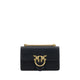Calfskin Love One Mini Shoulder Bag by Pinko, featuring front flap closure with magnetic button, iconic gold-plated Love Birds logo embossed on front, dual interior compartment, sliding chain strap, iconic tone-on-tone embroidered brand monogram on back, adjustable and removable flat leather shoulder strap.