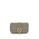 Calfskin Love One Shoulder Bag by Pinko, interlocking front fastening, adjustable and sliding chain shoulder strap, iconic Love Birds buckle embossed on the front, double internal compartment, internal zipped pocket, flat card pocket, iconic tone-on-tone embroidered brand monogram on the back.