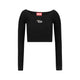 M-Vera-Ls Long Sleeve Top by Diesel, cropped pattern, all-over ribbed design, boat neck, cut-out detail with iconic three-dimensional brand logo plaque, monochrome pattern, slim fit.