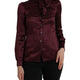 Maroon Ascot Collar Long Sleeve Top Blouse