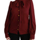 Maroon Long Sleeve Shirt Blouse Silk Top