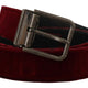 Maroon Velvet Leather Wide Vintage Metal Buckle Belt
