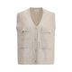 P.A.R.O.S.H.’s Vest is a functional and stylish garment featuring four large flap pockets on the front, ideal for a practical and characterful touch. The front button closure ensures a secure fit, while the ribbed hem and profiles define the line with elegance. The V-neckline completes the design lending a classic and versatile allure.