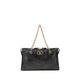 Medium Panthea Shoulder Bag by Valentino Garavani combines elegance and character thanks to its chevron motif in shiny matte nappa leather, embellished with enameled feline heads set with Swarovski® crystals. Equipped with chain handles and a studded, adjustable and removable leather shoulder strap, it offers double wearability. Antiqued gold metal hardware, the Signature VLogo logo and a nappa leather interior with functional pockets complete the design.