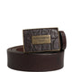 Men Brown Calf Leather Logo Metal Buckle Belt