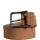 Men Brown Leather Classic Metal Buckle Belt