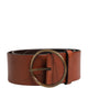 Men Brown Leather Wide Waist Metal Round Buckle Belt