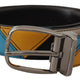 high-quality multicolor leather featuring a silver tone buckle closure. A unique eye-catching belt full of character.