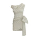 The polka dot satin mini Dress by Self Portrait blends vintage-inspired accents with fluid draping for a dramatic yet refined effect. Crafted from lightweight satin with a subtle sheen, it features a fitted silhouette with minimal stretch that enhances the figure. Asymmetric draping and gathering details add depth and movement, while the eye-catching side bow brings a feminine focal point. Finished with a concealed side zip closure, this mini dress pairs perfectly with stilettos for an elegant evening look.