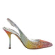 Multicolor Sequin Slingback Pumps embody glamor and vibrant sophistication. Covered in dazzling multicolor sequins, they shimmer beautifully with every step. The elegant slingback strap ensures a secure and comfortable fit, while the pointed toe and slender stiletto heel create a refined, feminine silhouette. Perfect for evening events or statement looks, these pumps reflect Dolce & Gabbana’s signature opulent and playful aesthetic.