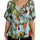 Multicolor Vegetable Print Silk Top Peplum Wrap Blouse