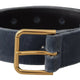Navy Blue Velvet Gold Metal Logo Waist Buckle Belt