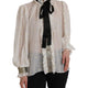 Gorgeous brand new with tags, 100% Authentic Dolce & Gabbana women’s white ascot collar silk blouse ruffled top.