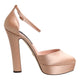 Gorgeous brand new, 100% Authentic DOLCE & GABBANA sandals has a floral embellishment on the toe area, featuring what appear to be red roses and green leaves. A light, peachy-pink or nude tone.