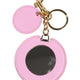 Pink Calf Leather Gold Metal Logo Print Keyring Keychain