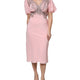 Pink Floral Lace Short Sleeves V-neck Midi Dress