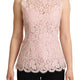 Gorgeous brand new with tags, 100% Authentic Dolce & Gabbana sleeveless blouse. A thin translucent material is responsible for the first, and a floral motif and a delicate shade of pink powder are responsible for the second. Domenico Dolce and Stefano Gabbana chose openwork cord lace, which Italian craftswomen wove from soft cotton.