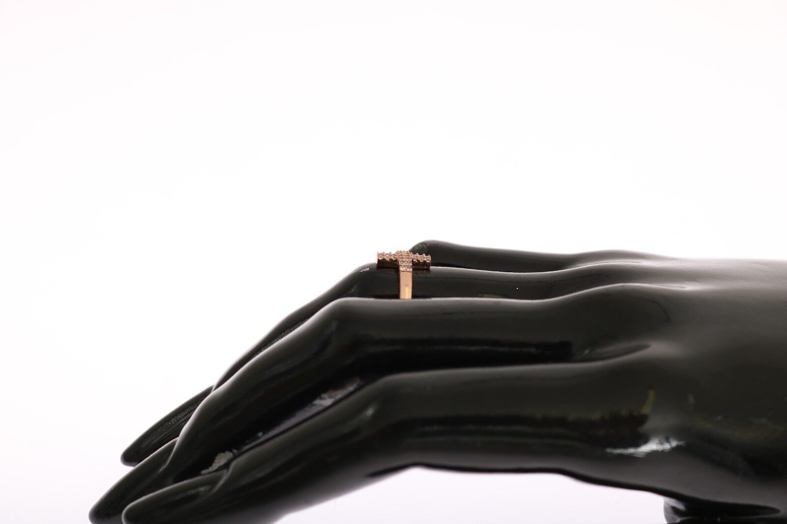 Pink Gold 925 Silver Womens Cross CZ Ring