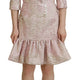 Pink Jaquard 3/4 Sleeve Sheath Midi Dress