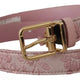 Pink Jaquard Embroidered Gold Tone Metal Buckle Belt