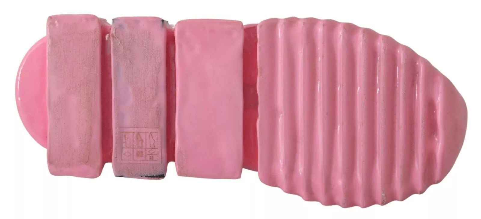 Gorgeous brand new with tags, 100% Authentic Dolce & Gabbana pink, black and white Sorrento sneakers are decorated with an elasticated logo tape to the back for an unapologetically cool touch. Featuring a round toe, a slip-on style, a pull tab at the rear, a branded insole and a rubber sole.