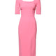 Pink Viscose Short Sleeve Sheath Midi Dress