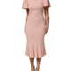 Pink Viscose Short Sleeves Sheath Midi Dress
