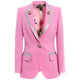 Dolce & Gabbana single-breasted wool blazer with contrasting satin details, peak lapels decorated with hand-painted rose appliques, single snap button and rose fastening, chest pocket and two front flap pockets, sleeves with snap button cuffs and rose appliques, side slits at the back and satin lining with rose print.