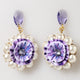 Purple Floral Crystal Pearl Drop Clip-On Statement Earrings
